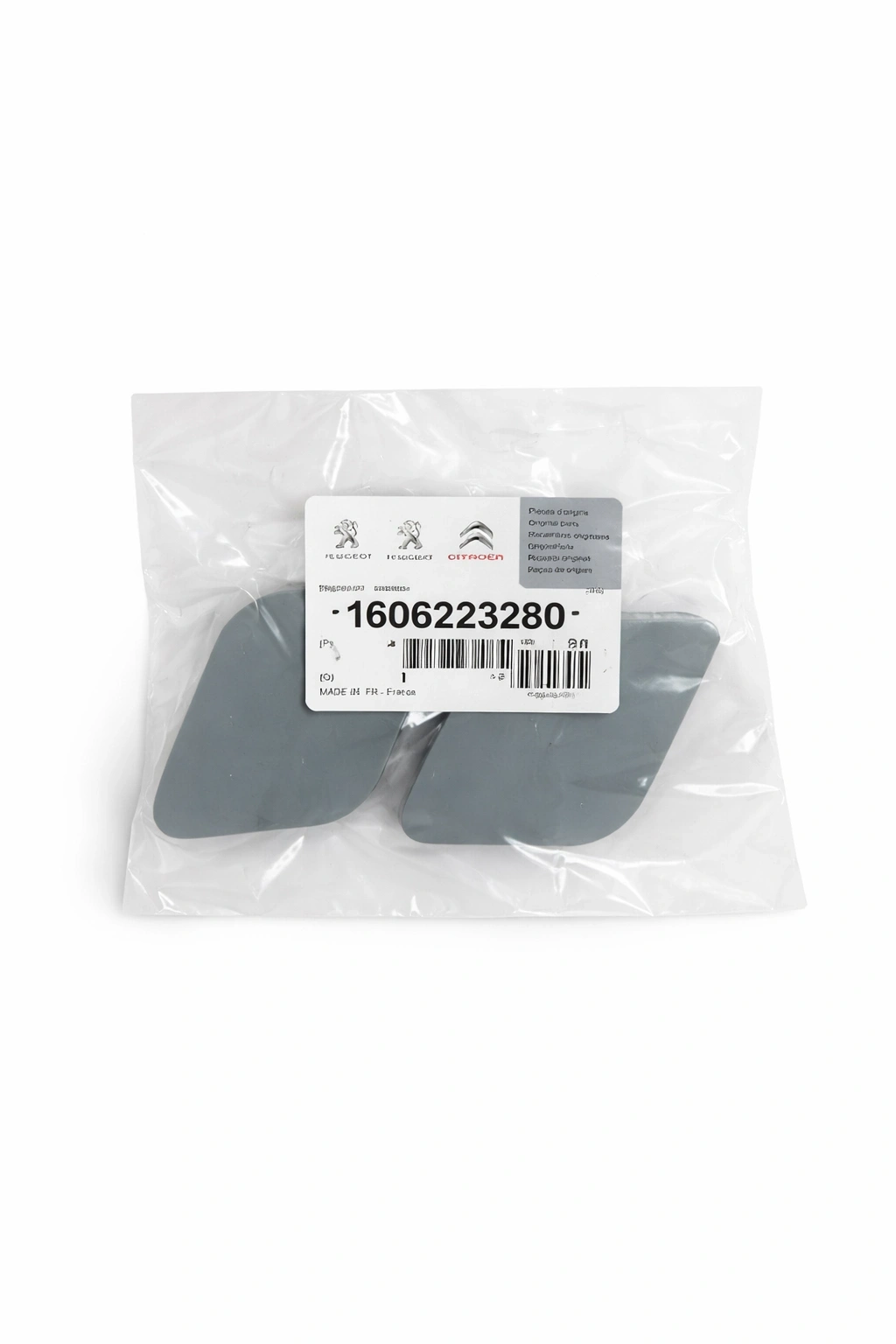 1606223280 Far Yıkama Kapağı Set, Peugeot 308 modeller için ön tampon üzerinde bulunan far yıkama sistemine ait kapak takım ürünüdür. Orijinal ölçülerde üretilmiş olup tampona birebir uyum sağlar.